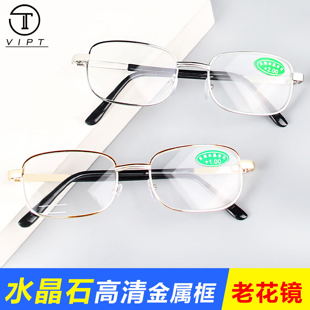 金属全框老花镜高清水晶石老花眼镜男女复古舒适老光工厂现货