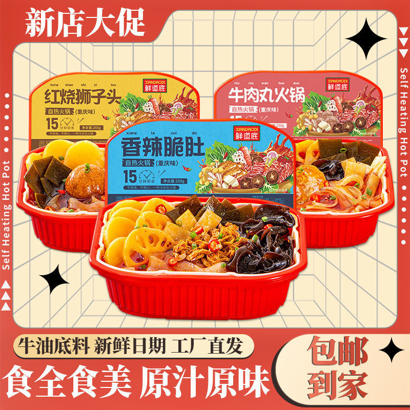 自嗨锅鲜道底自热小火锅懒人家用麻辣单人酸辣粉夜宵煮方便速食