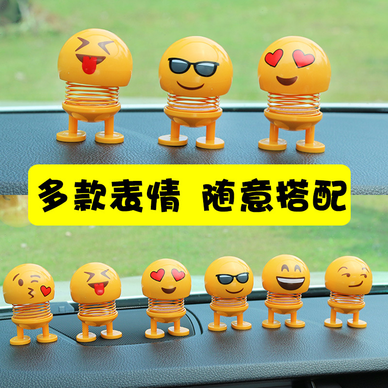 网红汽车摆件 弹簧表情包 创意摇头可爱卡通公仔车载车内装饰用品