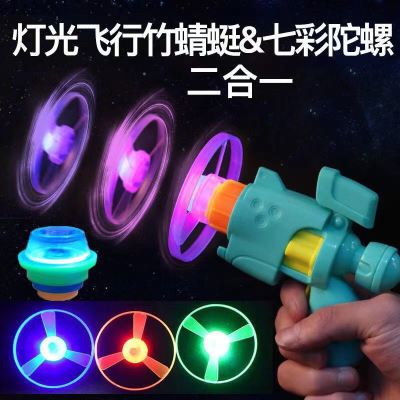 飞天发光竹蜻蜓抖音网红户外休闲飞盘陀螺儿童飞行玩具枪男女