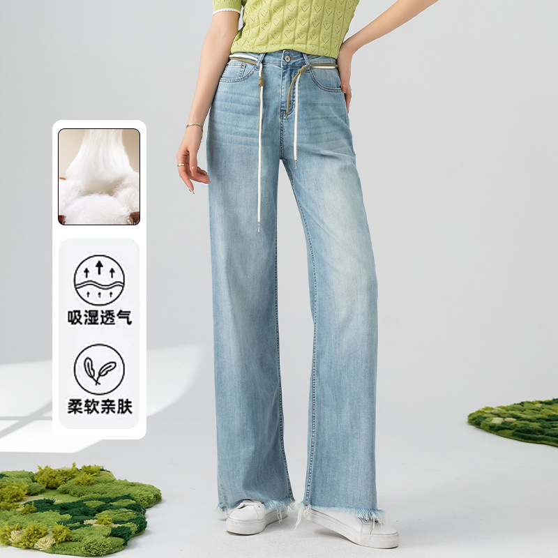 高腰直筒阔腿牛仔裤女宽松毛边2023夏季新款垂坠感加长拖地裤ykk
