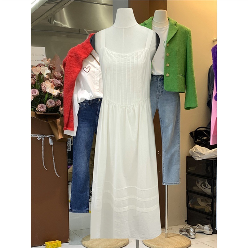 初恋感法式无袖小个子显瘦A字裙复古大摆伞裙白色吊带背心连衣裙