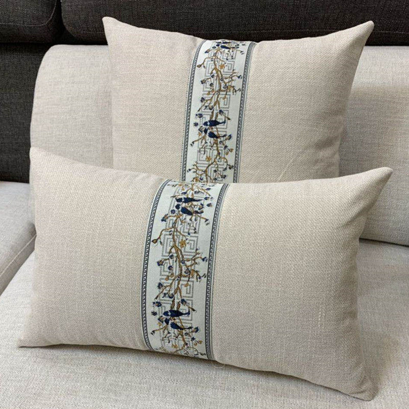 新中式风亚麻靠垫纯色沙发靠背护腰靠枕红木家俱抱枕套长方形腰枕