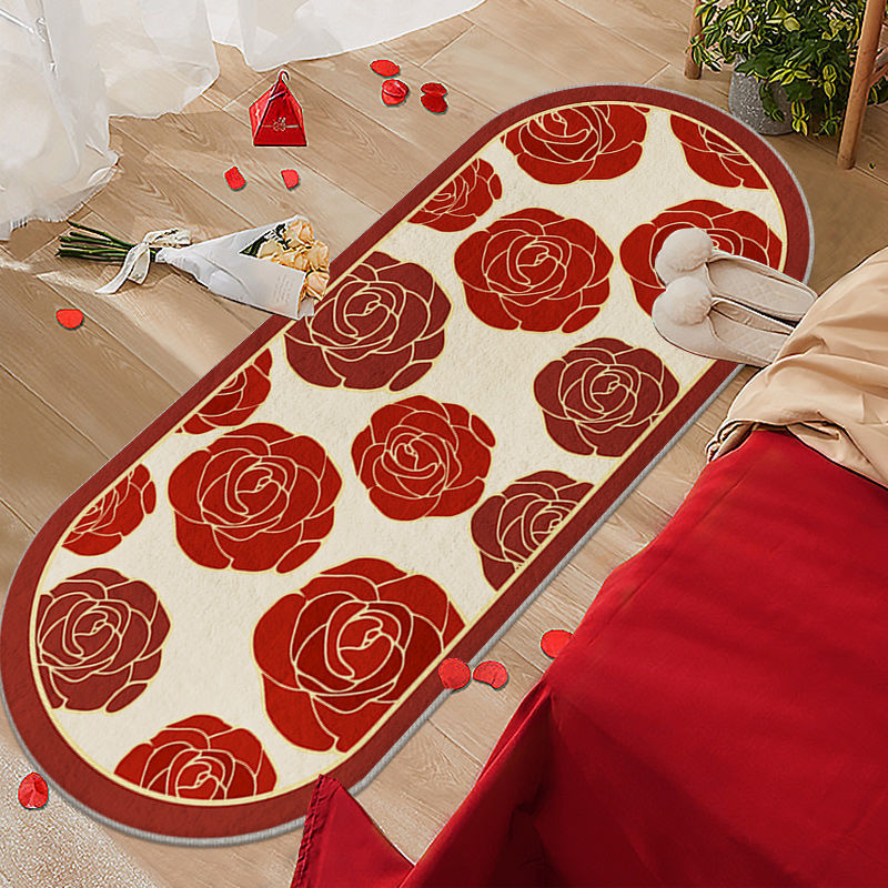 婚礼喜庆卧室耐脏床边毯家用婚房防滑长条红地毯仿羊绒结婚地毯