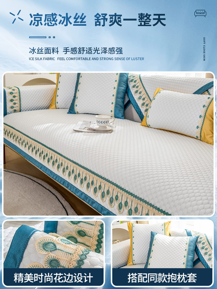 夏季冰凉豆豆沙发垫皮沙发防滑凉席套罩冰丝扶手靠背坐垫子盖布巾