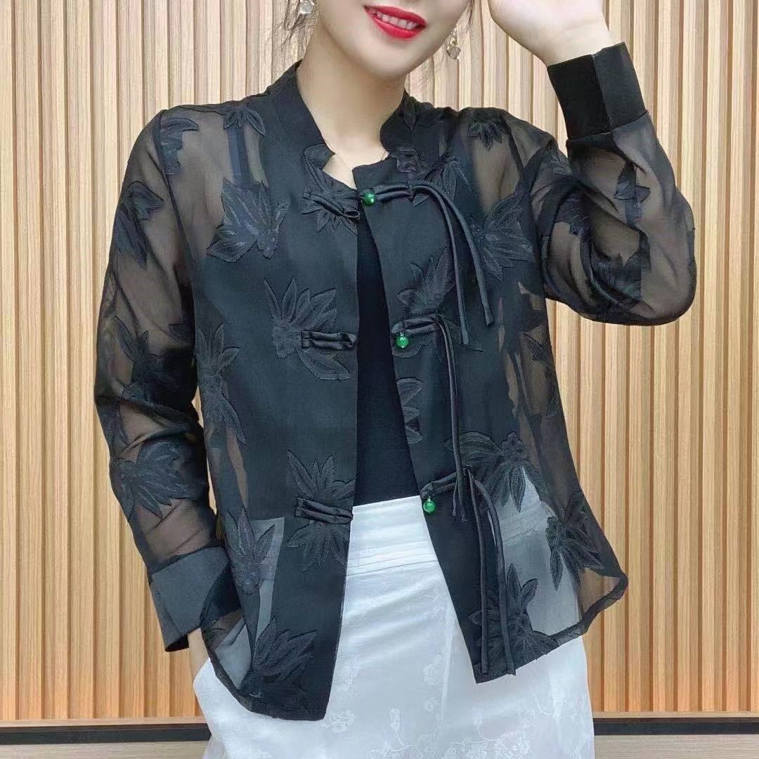2022新款妈妈中国风盘扣薄款防晒衣中老年开衫外搭复古百搭外套女