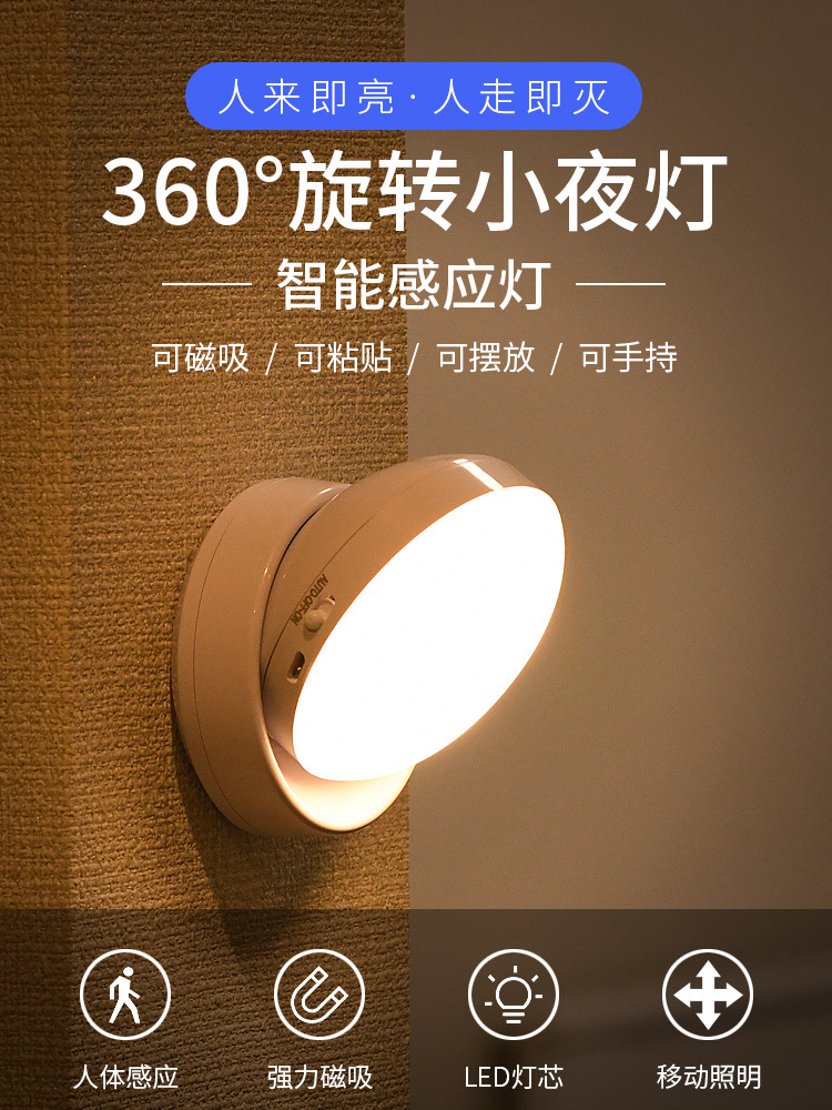 走廊过道人体感应小夜灯usb充电卧室婴儿喂奶护眼灯床头LED睡眠灯
