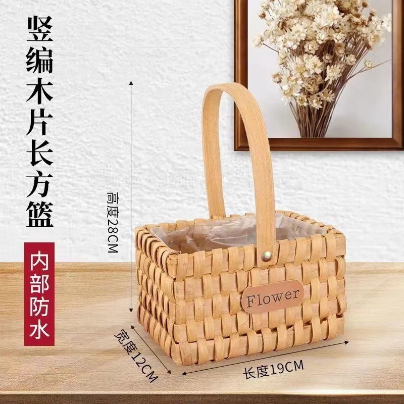 手工编织木质花篮长方形手提木片花篮鲜花花艺插花篮藤编多肉植物