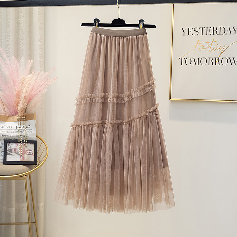 纱裙女半裙2023春秋夏季新款高腰不规则网纱半身裙中长款a字裙子