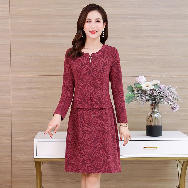 妈妈春秋装长袖连衣裙中长款中老年女时尚洋气裙子阔太太高贵上衣
