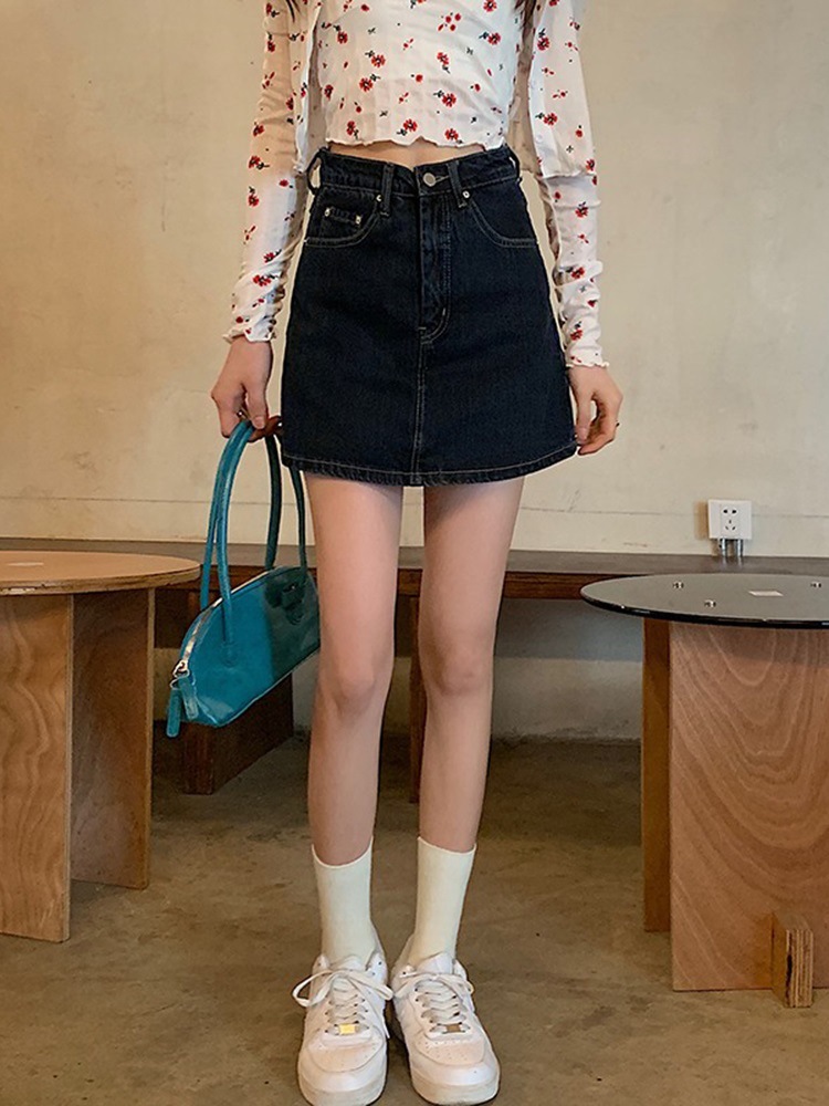 夏季a字牛仔半身裙包臀短裙女装裤裙早春季高腰黑色小个子小裙子