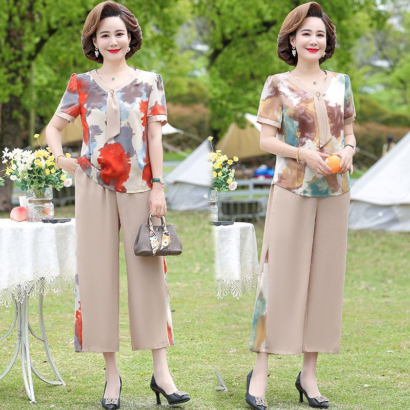 妈妈夏装套装2023新款洋气中老年时尚洋气短袖T恤女40岁50两件套