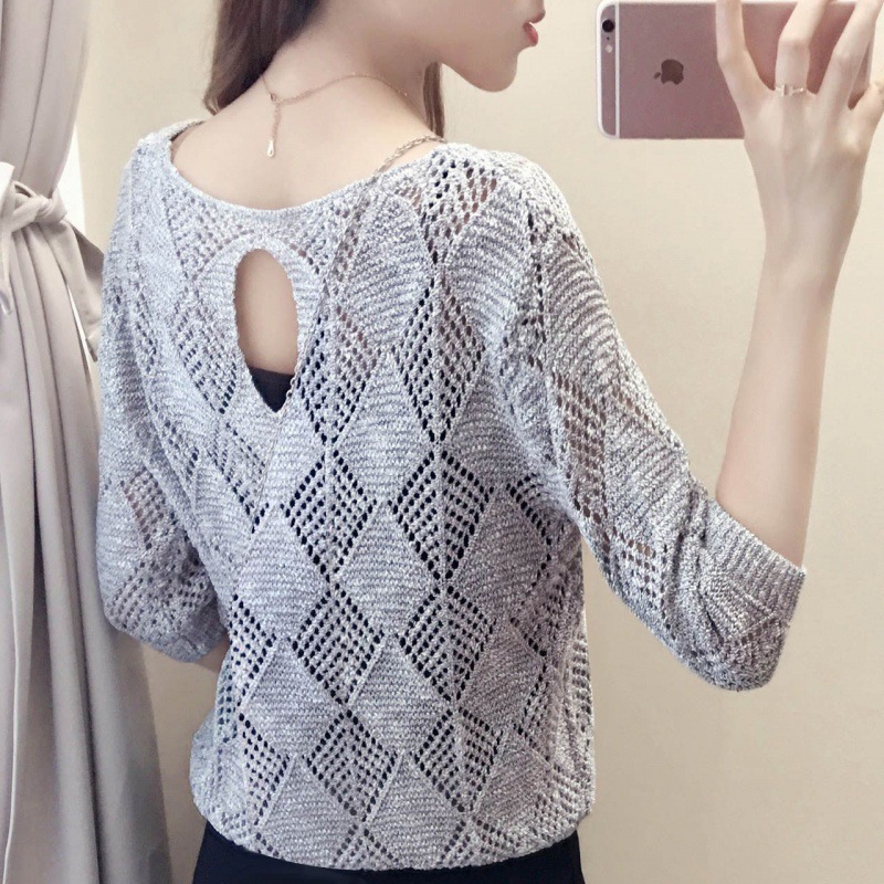 2020春夏新款女装宽松冰丝针织衫套头短款毛衣镂空罩衫薄针织恤