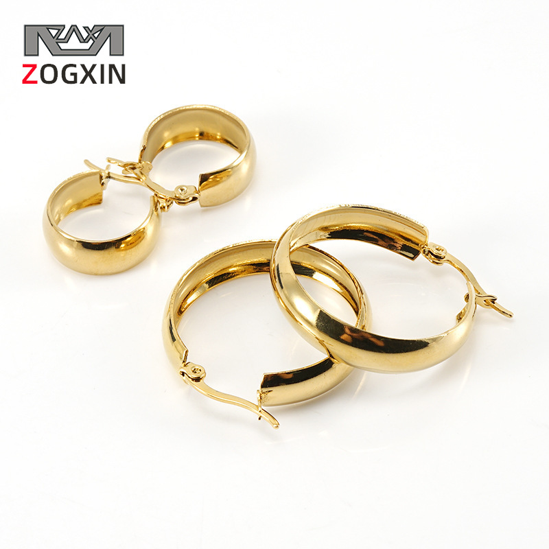 跨境欧美风时尚不锈钢个性夸张耳环女18K金色钛钢圆形卡扣耳圈女