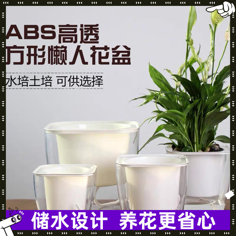 免浇水自吸水懒人花盆方形透明加厚塑料绿萝盆栽北欧创意家用包邮