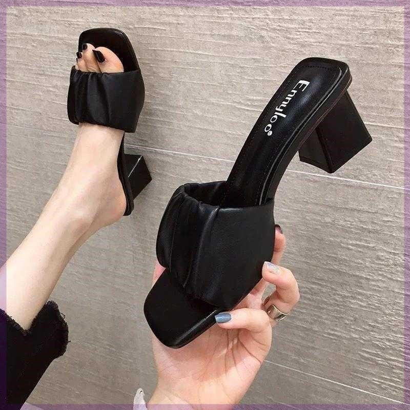 拖鞋女高跟服装店试衣间女外穿年夏季新款时尚粗跟半拖凉鞋子