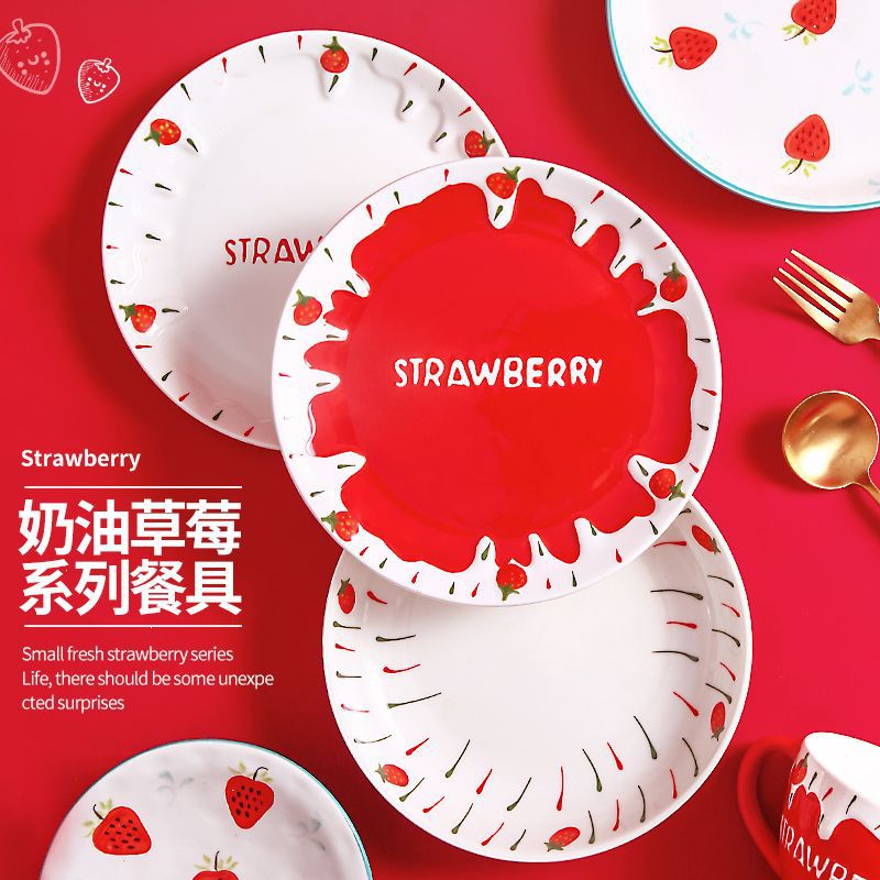 盘子菜盘家用草莓盘陶瓷日式好看的早餐盘餐具可爱少女心创意碗盘
