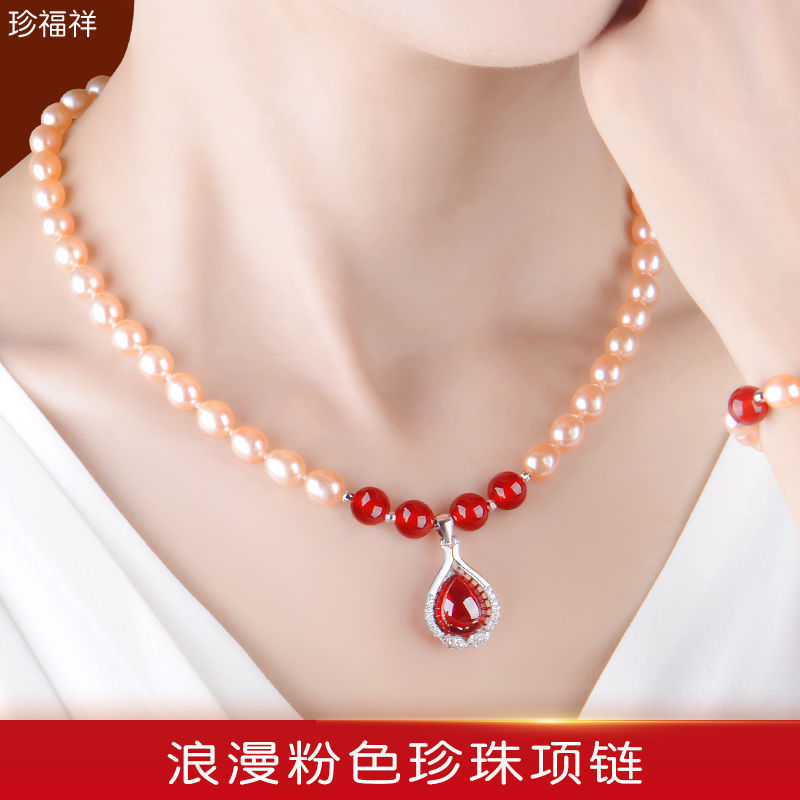 珍珠项链女款粉色S925纯银吊坠天然淡水送妈妈母亲节礼物礼盒