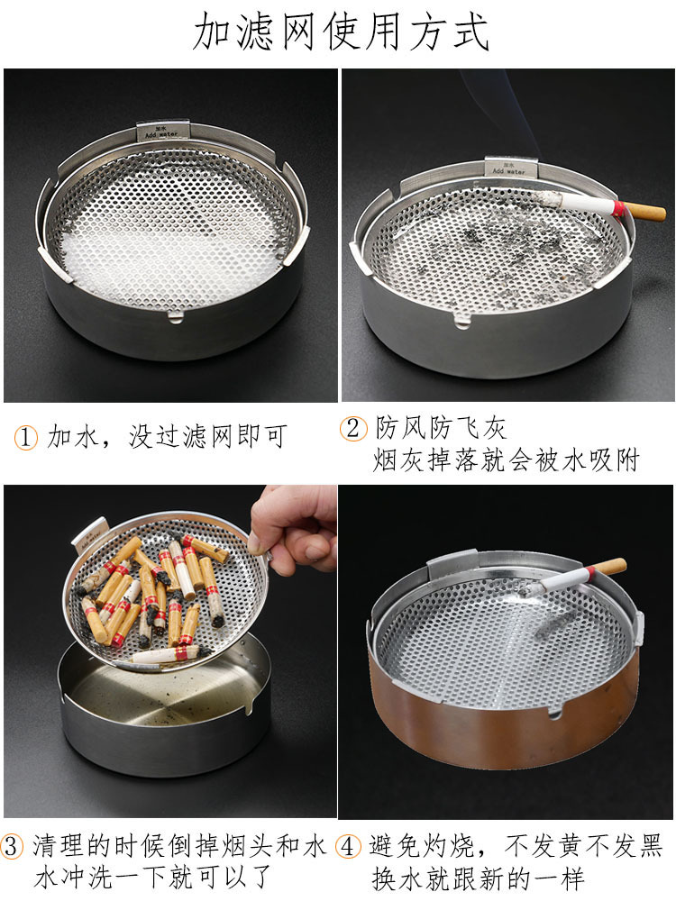 带滤网烟灰缸不锈钢易清洁创意防风防飞灰家用客厅烟缸办公室商务