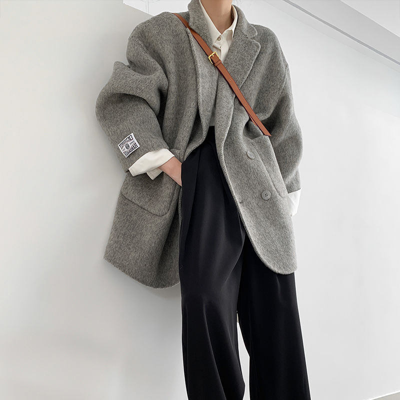 西装双面羊绒大衣女短款2022年秋冬新款小个子双排扣羊毛毛呢外套