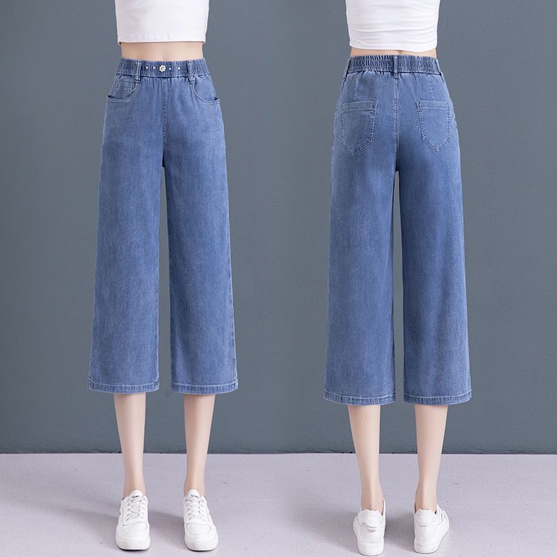 天丝牛仔阔腿裤女2023夏季新款超薄牛仔裤冰丝高腰显瘦垂感七分裤