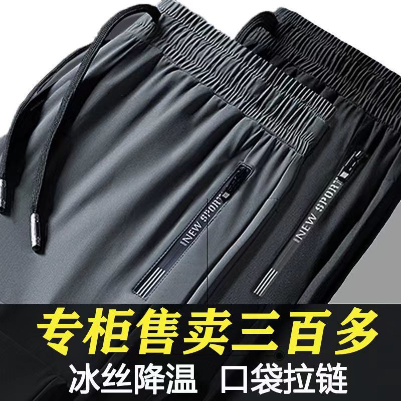 冰丝长裤男春夏季男款裤子侧拉链口袋冰丝裤高档真丝爆款休闲裤潮