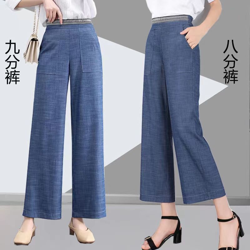 冰丝阔腿裤女高腰垂感天丝牛仔裤夏季薄款九分裤2023新款阔脚八分