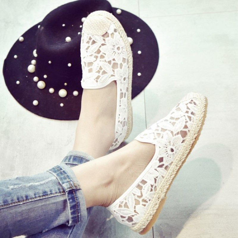 夏季新款韩版网纱豆豆鞋女平底浅口单鞋透气镂空懒人鞋蕾丝渔夫鞋