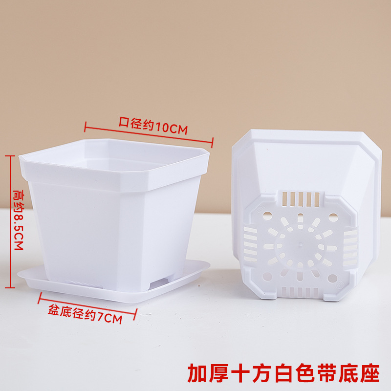 加厚小白方小黑方多肉方形花盆塑料特厚带托架叶插育苗盆套餐批发