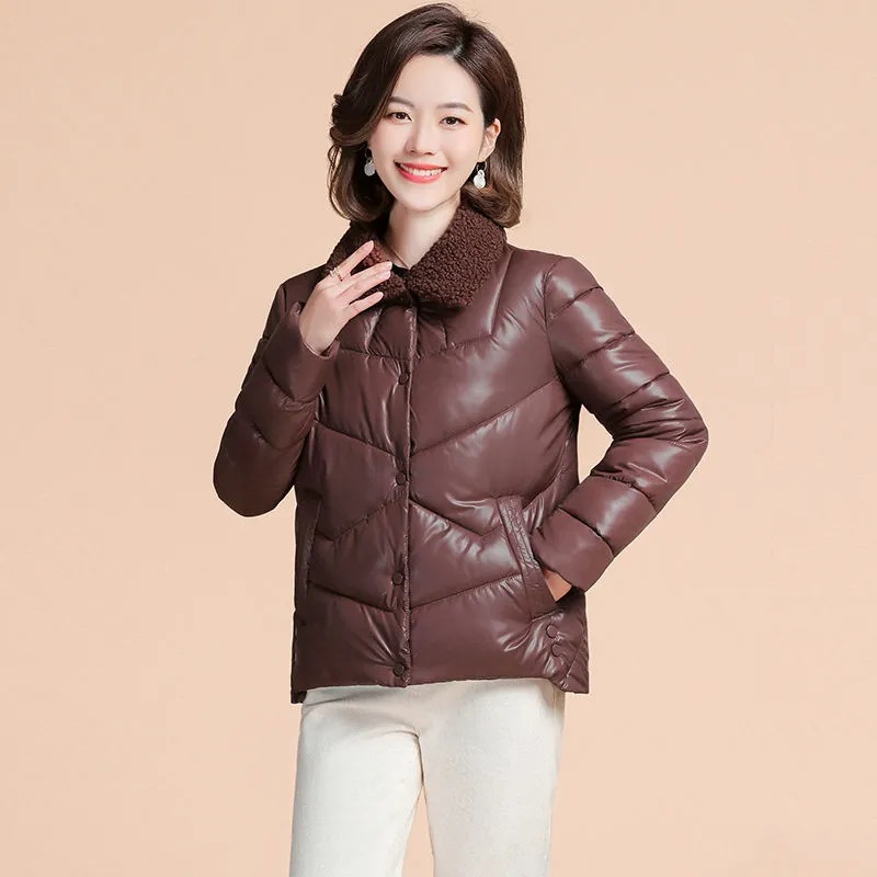 2023新款亮面棉服女冬季时尚加绒羊羔毛棉衣女士短款外套棉袄女