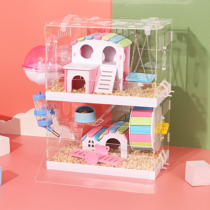 托盘式仓鼠笼子亚克力笼金丝熊双层超大透明别墅用品玩具齐全便宜