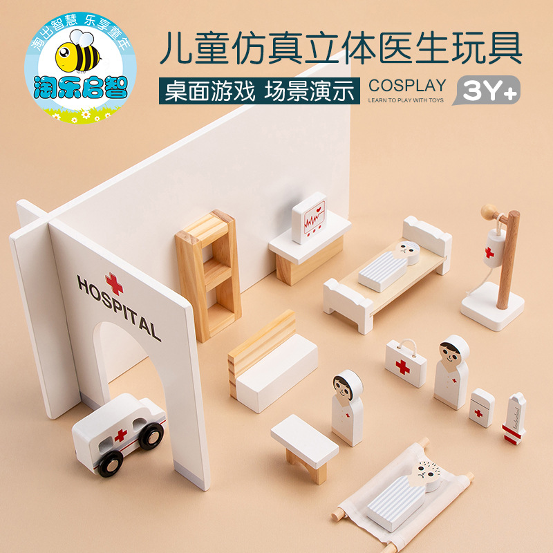 木制仿真益智宝宝打针看病体验儿童木质过家家小医生立体玩具套装