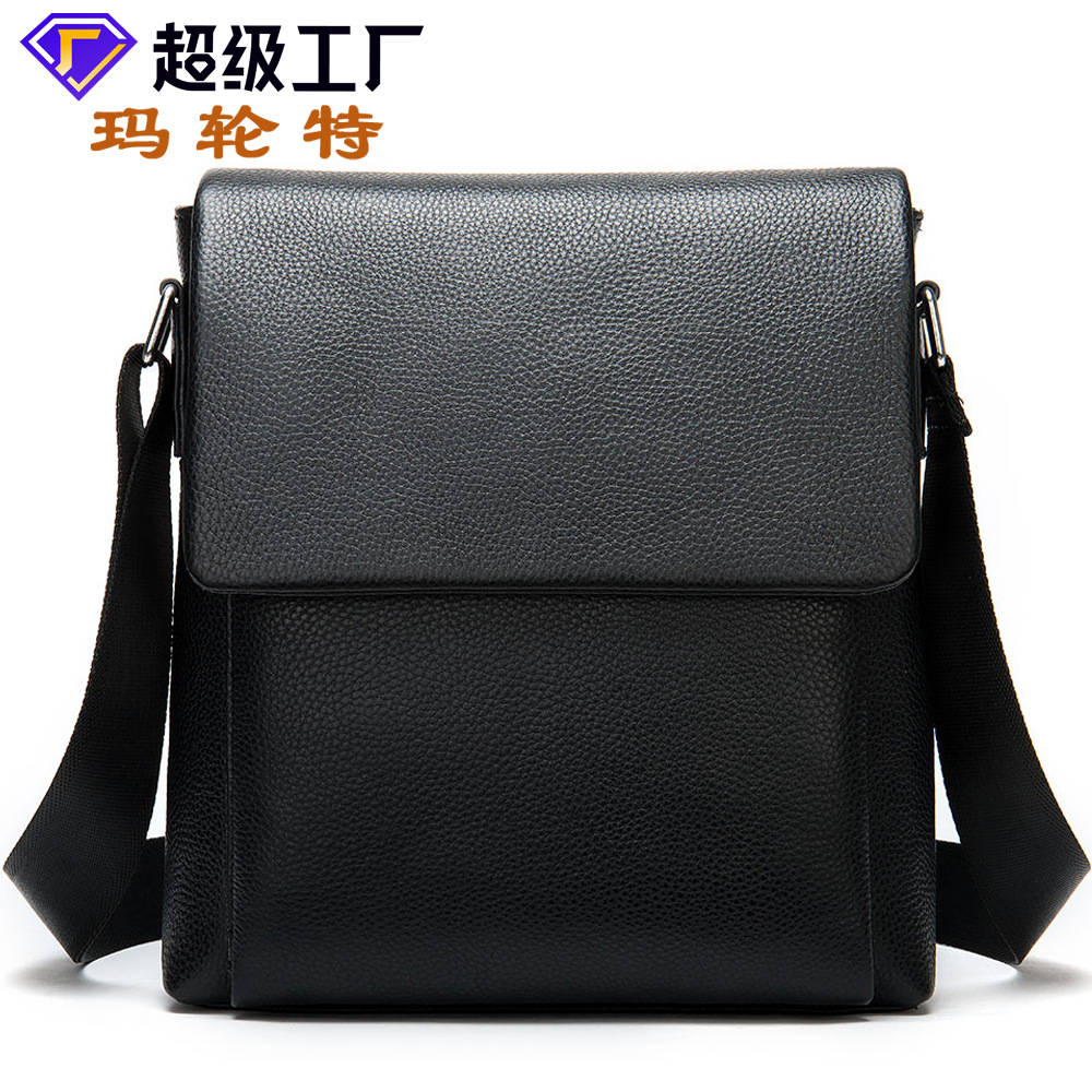 厂家直销头层牛皮男包商务男士单肩包竖款翻盖邮差包一件代发