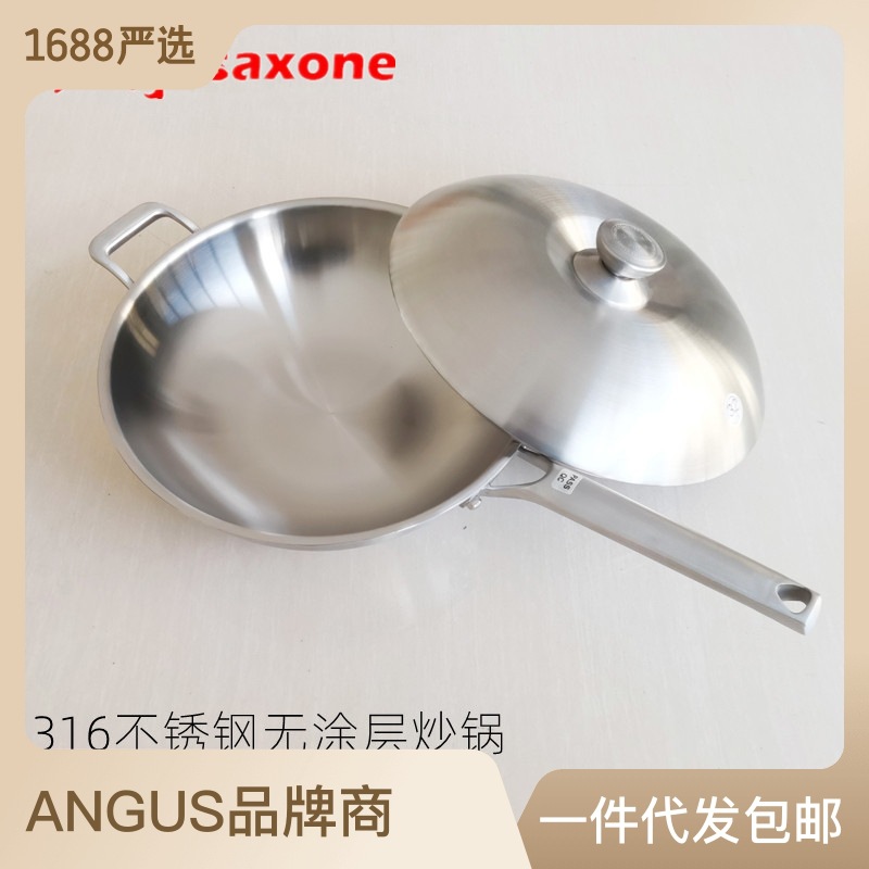 厂家批发三层钢锅家用无涂层不粘锅炒锅 316不锈钢炒锅一件代发