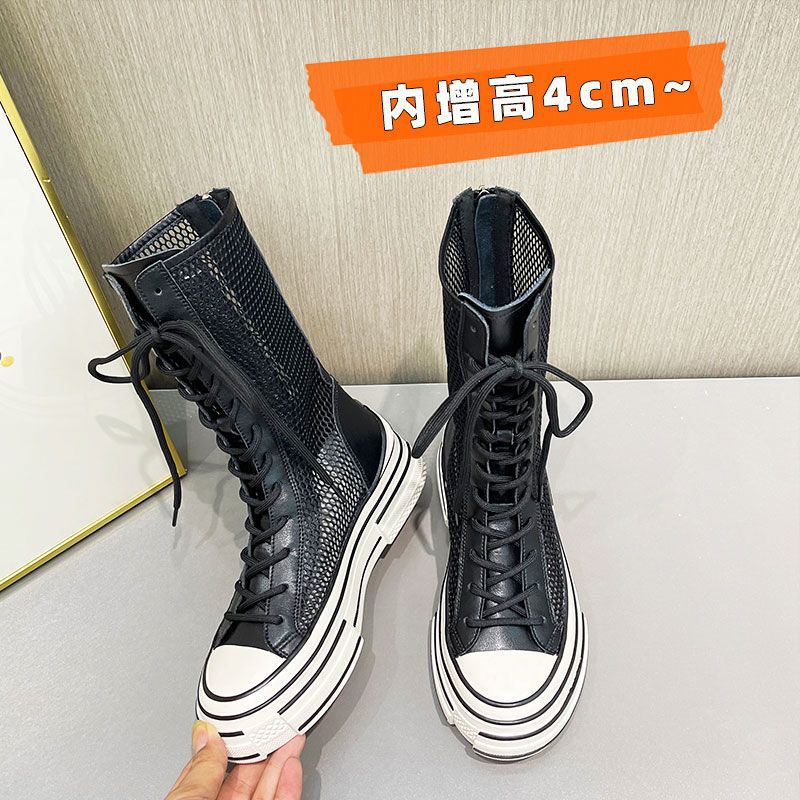 内增高马丁靴夏季薄款网纱靴子女2023新款镂空网靴系带中筒凉靴女