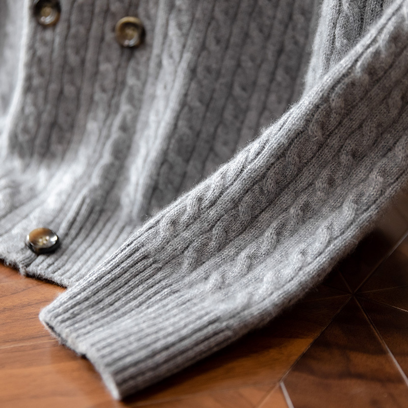 重磅加厚100纯羊绒衫男双排扣开衫商务休闲毛衣外套宽松针织衫