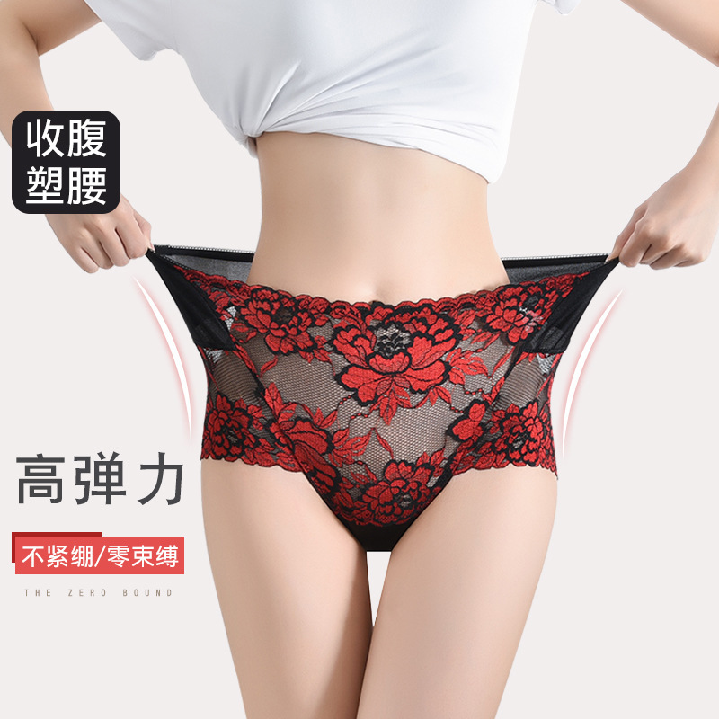 高弹力高腰女士收腹内裤 新款性感蕾丝网纱情趣全棉裆三角裤