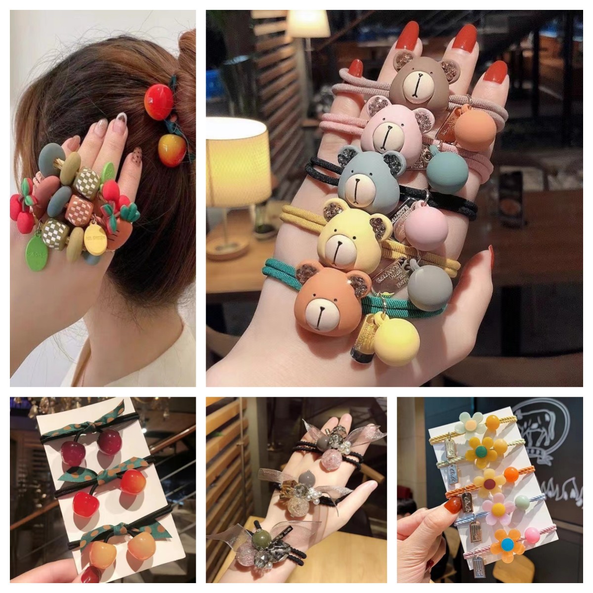 气质韩版樱桃打结皮筋 多样式小清新网红ins马尾发圈扎头绳头饰