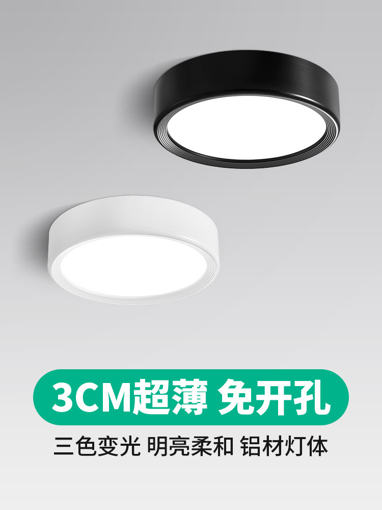 超薄明装筒灯圆形小尺寸吸顶客厅卧室玄关背景走廊过道led天花灯