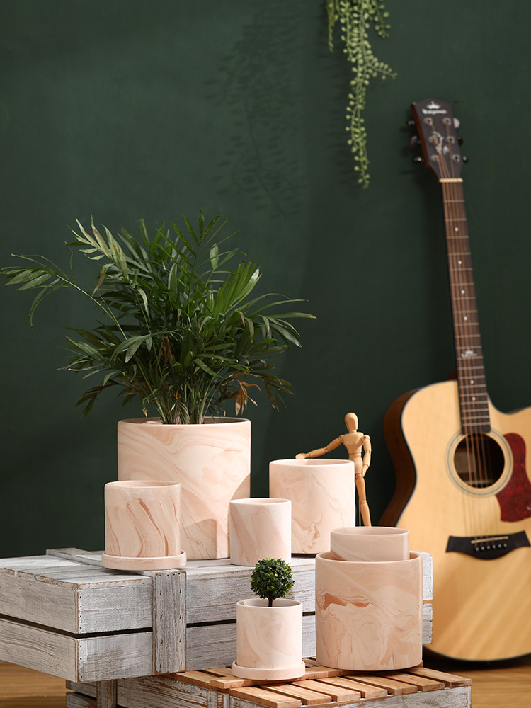 天然玛奇朵纹红白陶花盆素烧陶土粗陶透气绿萝兰花多肉盆栽带托盘