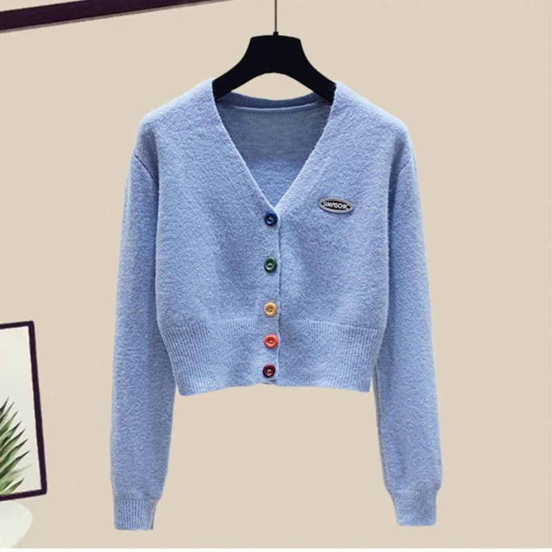 单件/套装 春季牛仔套装裙女新款时尚毛衣针织衫半身裙两件套