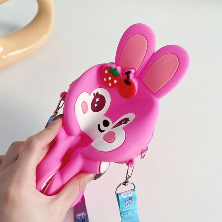 新款女孩解压硅胶包捏捏乐小挎包草莓兔斜挎包可爱零钱包儿童包包