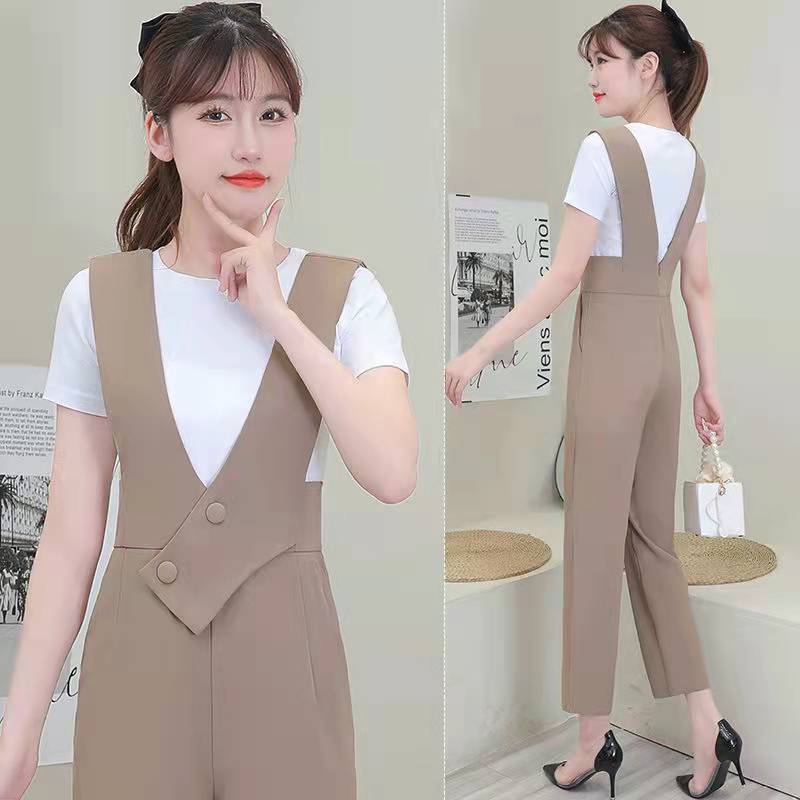 感连体背带裤套装女2023年夏装新款背带小裤职业工装连体套装