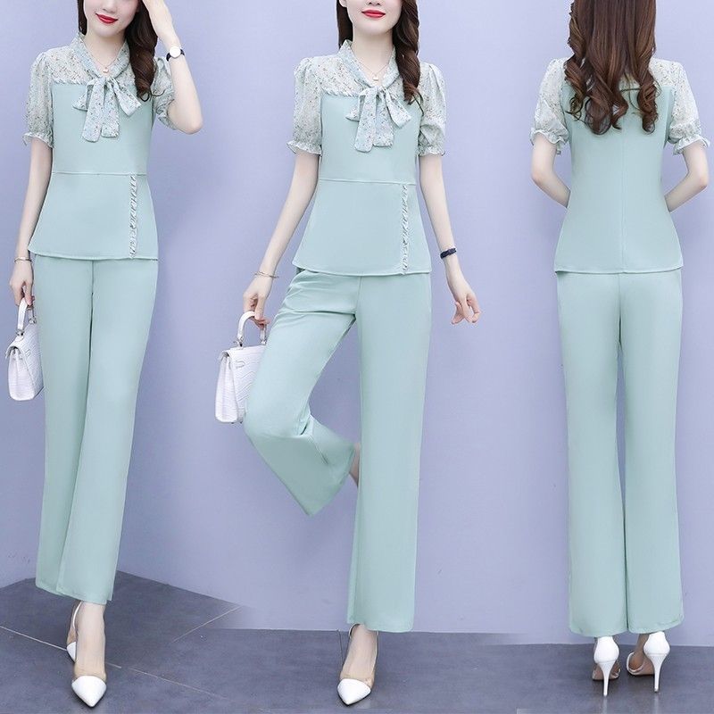 时尚阔腿裤套装2023夏装新款气质女神范妈妈两件套显瘦减龄洋气春