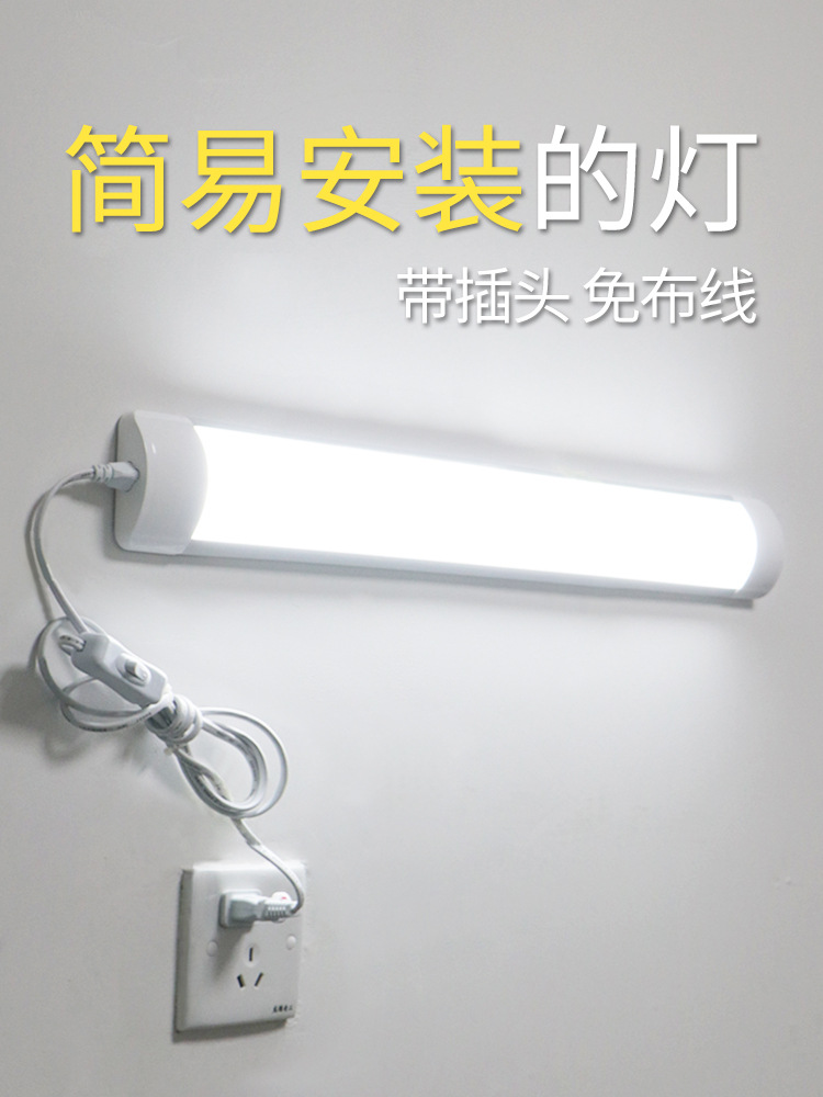 卧室灯房间墙壁长条吸顶超亮照明插座插电直插式免安装接线打孔出