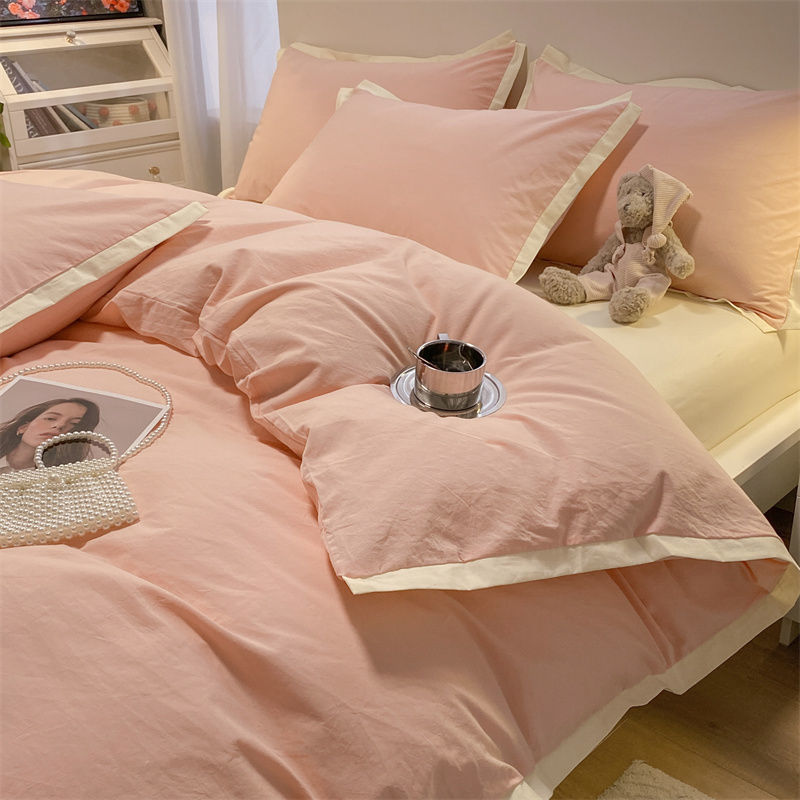 风水洗棉床上四件套四季通用被套学生宿舍三件套寝室少女心粉4