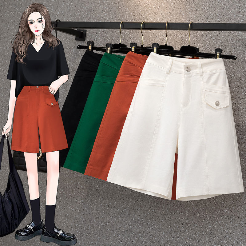 大码弹力五分裤子女夏薄款200斤胖mm高腰显瘦百搭宽松a字阔腿短裤