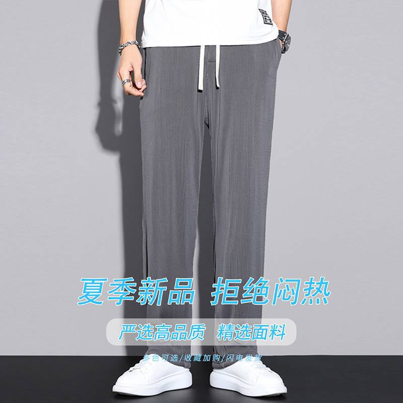 冰丝长裤男款阔腿裤男夏季薄款垂感弹力潮流宽松直筒运动长裤子