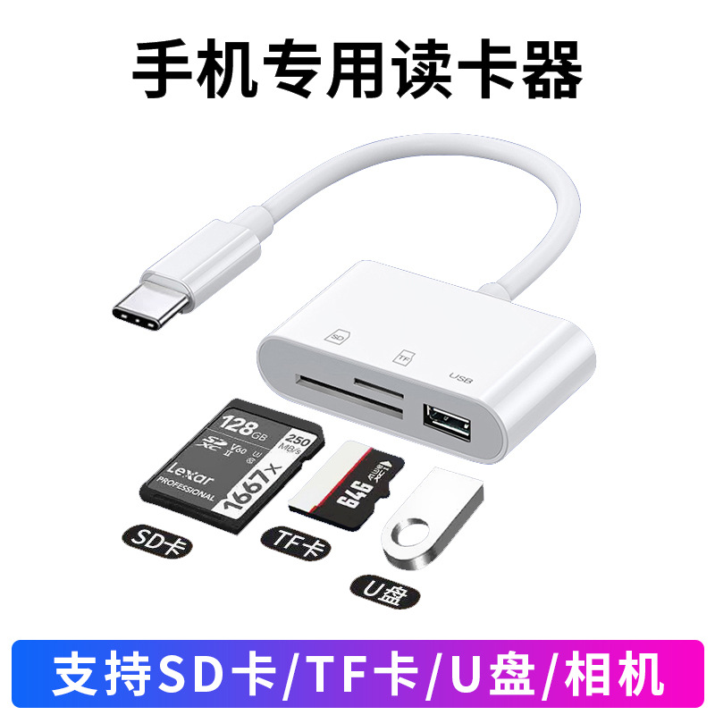 typec三合一多功能读卡器万能SD卡TF卡u盘通用适用于华为P40手机o
