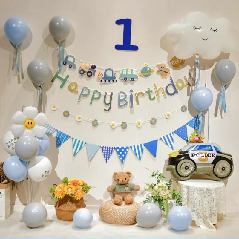 周岁生日布置宝宝男孩那边还背景墙家里派对气球场景装饰